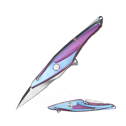Wholesale Popular Titanium Alloy Steel Handle D2 Steel Camping Folding Pocket Knife Small Keychain